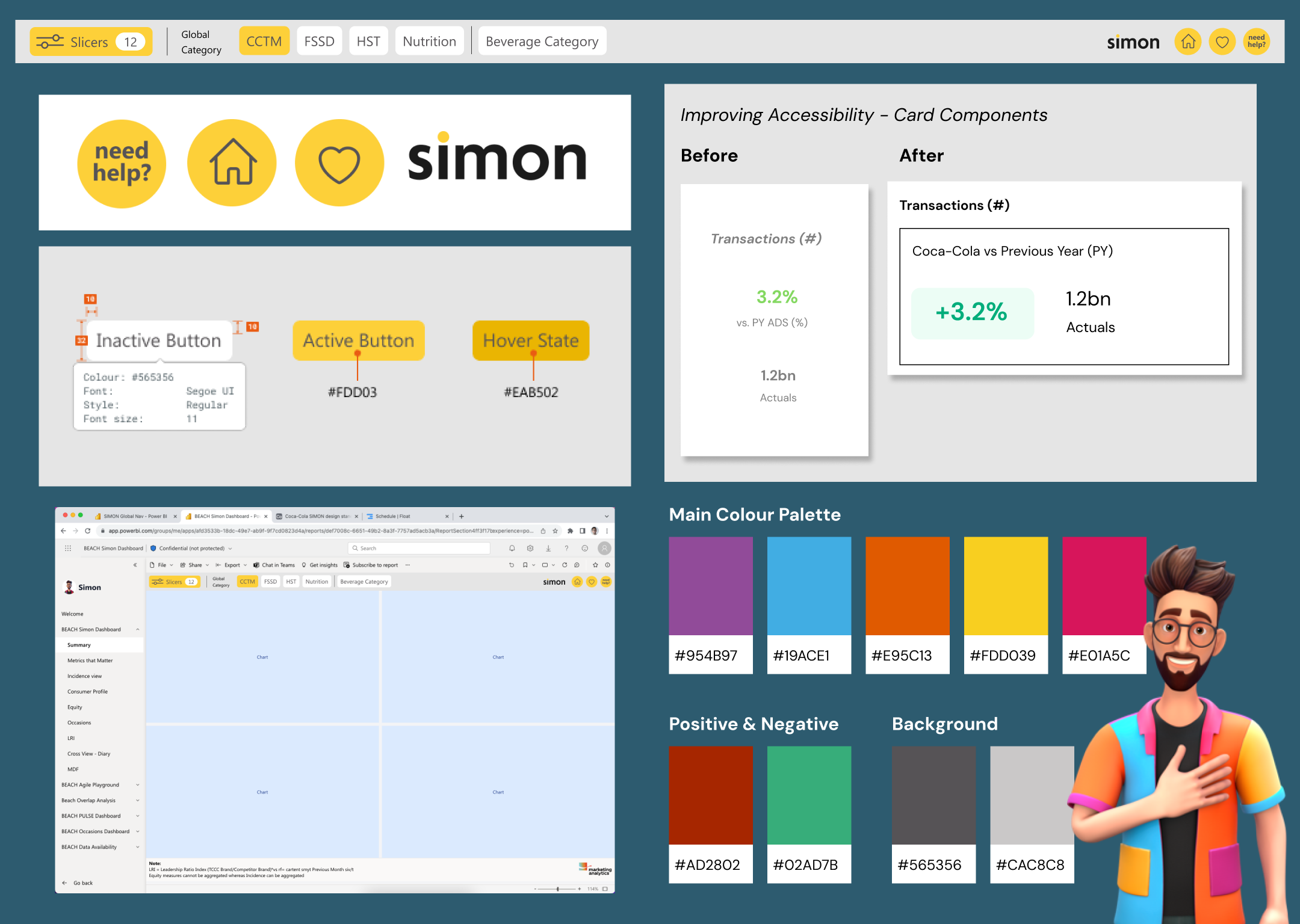 After launching Coca-Cola’s global knowledge and insights platform ‘SIMON,’ a surge of diverse content led to inconsistent report design, duplication of effort, and barriers to data literacy across global teams. Coca-Cola needed a scalable, easy-to-use design system to improve user experience, reduce development overhead and reinforce the SIMON brand as the trusted home of insights.